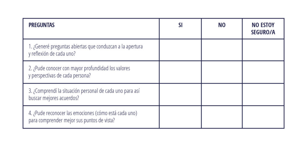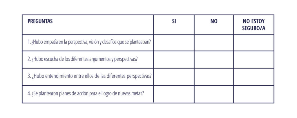 Luego de la conversación, el Líder puede analizar cómo fue el encuentro, la capacidad de escucha del Equipo, respondiéndose algunas preguntas: