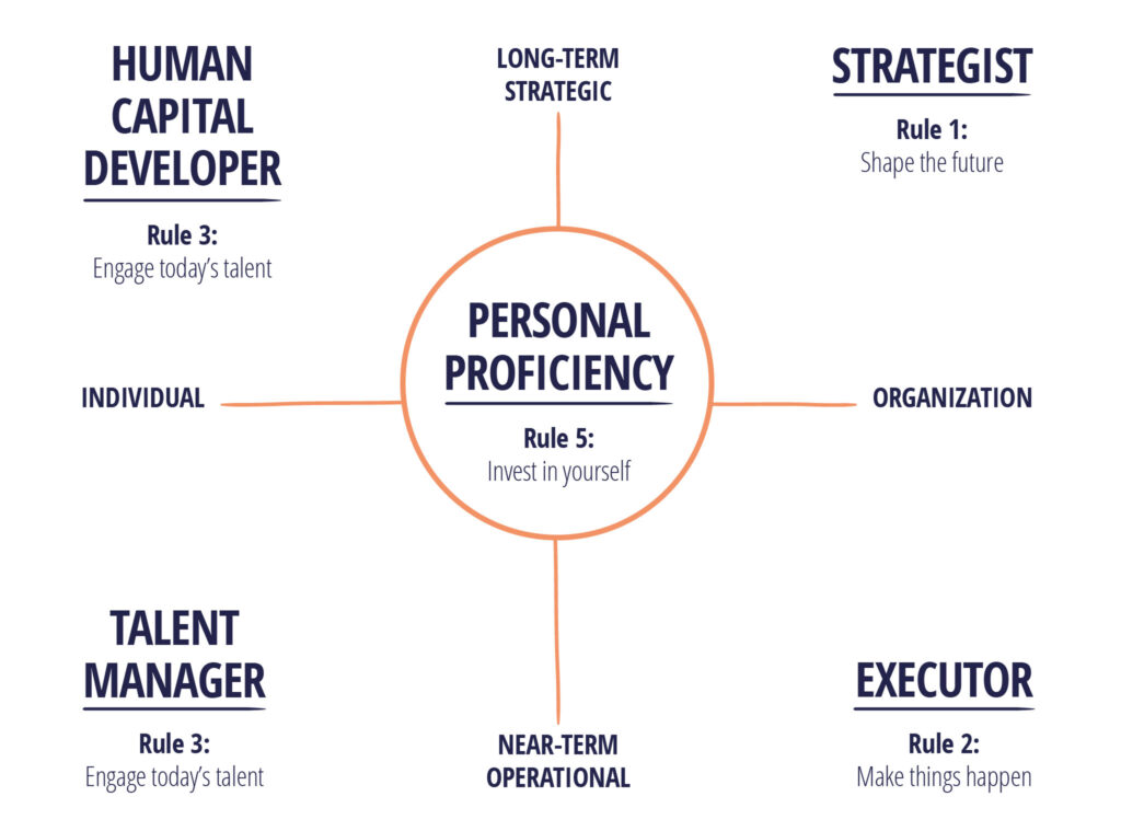 De esta manera, aborda el rol del Líder desde una perspectiva estratégica (de largo plazo) y otra operacional (de corto plazo). También incluye la mirada organizacional y al mismo tiempo la individual considerando el impacto en la Organización como un todo pero también en los Individuos que la conforman.