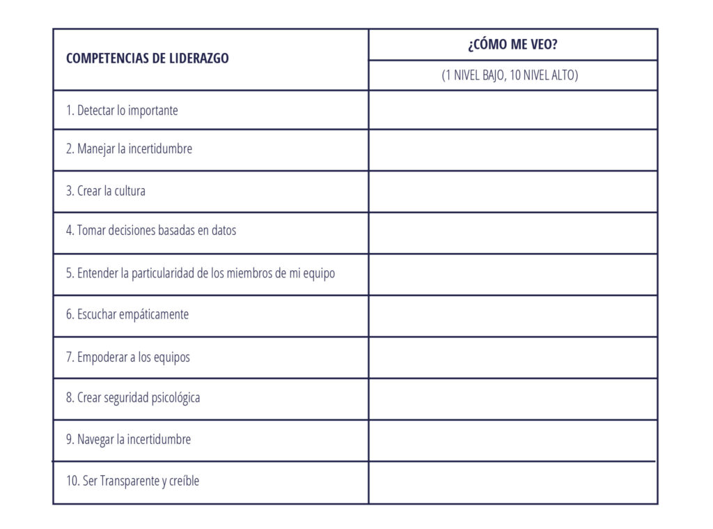 EN TU ROL COMO LIDER, ¿cómo te ves en relación a estas Competencias? Te animás a autoevaluarte? Te proponemos un formato muy sencillo para eso: