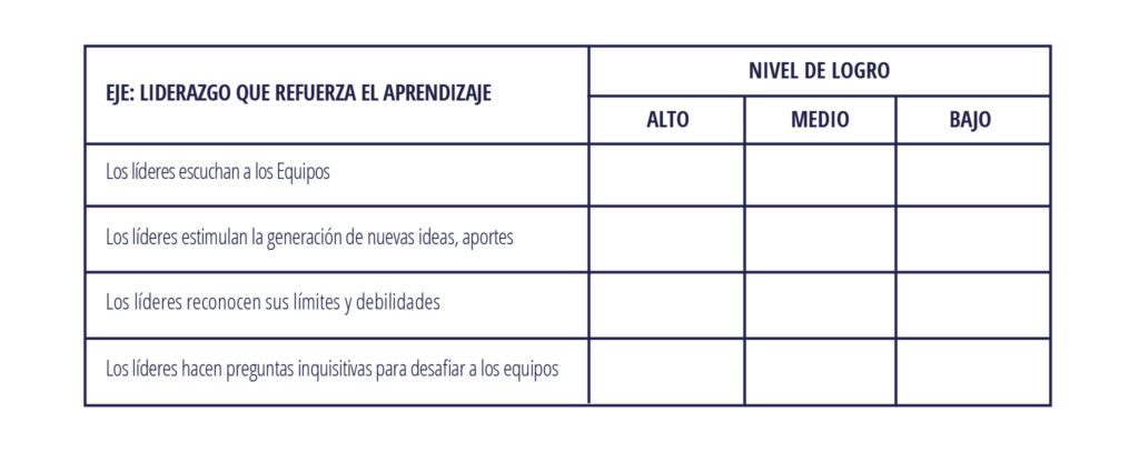 - Contar con Líderes que refuercen el aprendizaje (los líderes están abiertos a aprender?)